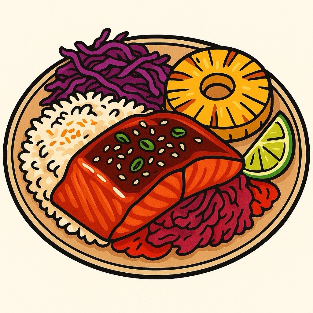 (WEDNESDAY 14-01-2026)Hawaiian Teriyaki Salmon with Coconut Rice, Grilled Pineapple& Red Cabbage Slaw (WEDNESDAY 14-01-2026)